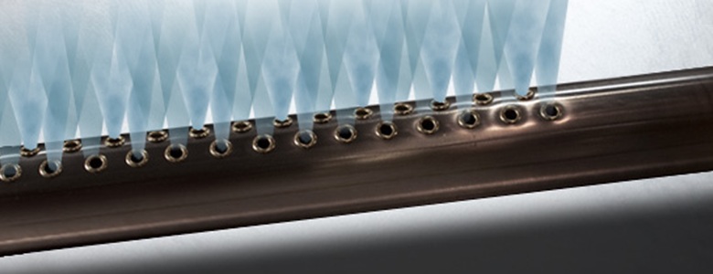 Pro přímé zvlhčování vzduchu s využitím vysokotlaké vody s prakticky bezhlučným chodem.